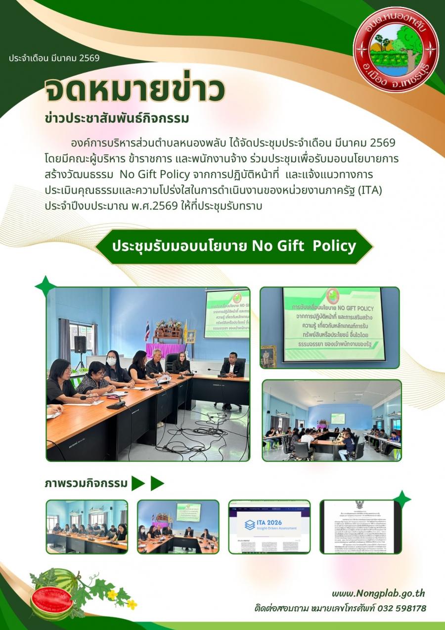 ประกาศองค์การบริหารส่วนตำบลหนองพลับ เรื่อง นโยบายการไม่รับของขวัญ และของกำนัลทุกชนิดจากการปฏิบัติหน้าที่ (No Gift Policy) ขององค์การบริหารส่วนตำบลหนองพลับ ประจำปีงบประมาณ พ.ศ.2569