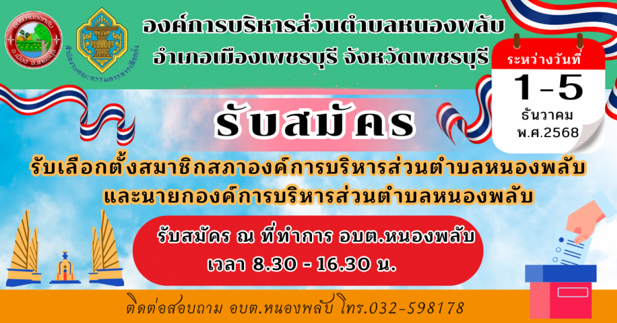 ประกาศองค์การบริหารส่วนตำบลหนองพลับ เรื่อง รับสมัคร รับเลือกตั้งสมาชิกสภาองค์การบริหารส่วนตำบลหนองพลับ และนายกองค์การบริหารส่วนตำบลหนองพลับ